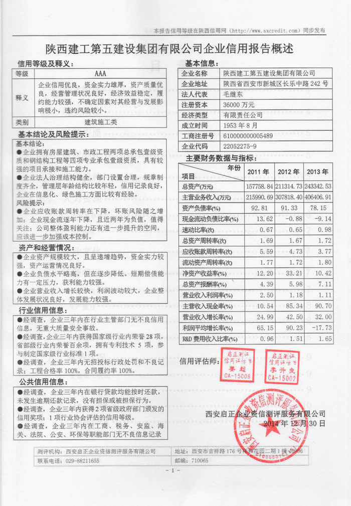 推薦信息 [信用報(bào)告陜西黎明建設(shè)工程有限公司[9760]