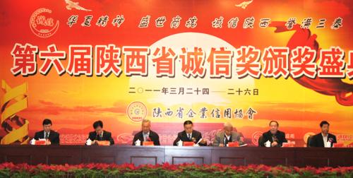 2011年3月25日,陜西省企業信用協會二屆三次年會在陜西丈八溝賓館隆重召開,省政協副主席李進權出席,協會顧問、省人大原副主任劉遵義、全國工經聯副會長、原省國資委主任邱世杰、陜西省委辦公廳原副主任,省企業信用協會會長劉林亭,協會常務副會長、秘書長王平安,省商務廳副巡視員、協會副會長李升良等負責同志以及共建單位的有關負責同志、協會會員代表、獲獎企業代表出席了會議,部分省市信用組織代表、有關專家學者共近600人參加了此次年會。原省國資委副巡視員、協會副會長劉根科主持會議。 大會審議并通過了協會2010年度工作報告,會長劉林亭代表主辦方在大會上致辭講話,對參會代表、嘉賓及兄弟省市信用組織代表表示熱烈歡迎,對會務工作提出了要求,預祝大會圓滿成功。協會顧問、省人大原副主任劉遵義做了重要講話,充分肯定了協會一年來為我省信用建設所做的工作,并對協會今后的工作提出了新要求、新希望。年會期間,還舉行了第六屆陜西省誠信獎頒獎典禮,第八屆中國西部信用高層論壇,電視文藝晚會等系列活動。2011年3月26日中午,大會圓滿完成各項議程,勝利閉幕。