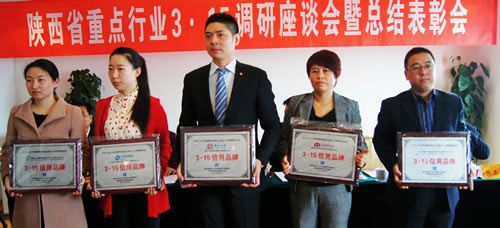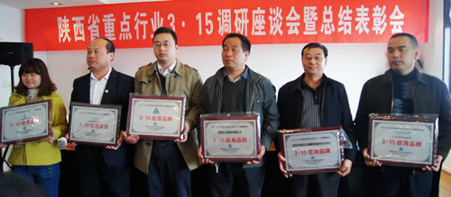 2013年3月15日,陜西省重點(diǎn)行業(yè)3·15專題調(diào)研座談會暨總結(jié)表彰會在西安召開。會議發(fā)布了2012-2013年度陜西省重點(diǎn)行業(yè)3·15專題調(diào)研報告,并授予36戶企業(yè)“3·15信用品牌”稱號。