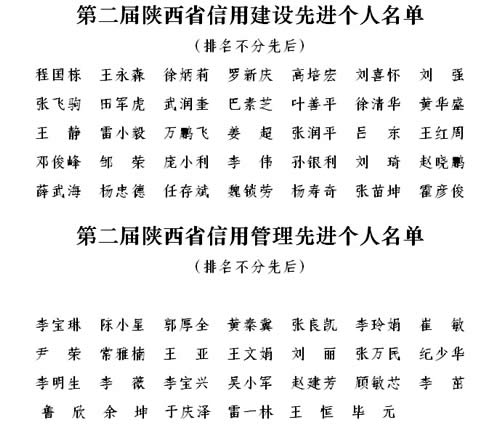 陜西省企業信用協會第二屆“信用建設先進個人”“信用管理先進個人”公告
