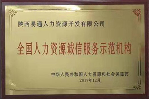 易通人力公司先后獲得多項(xiàng)殊榮,2017年12月被國家人社部評(píng)為“全國人力資源誠信服務(wù)示范機(jī)構(gòu)”,2017年被陜西省人力資源和社會(huì)保障廳評(píng)為“陜西省優(yōu)秀人力資源誠信服務(wù)示范機(jī)構(gòu)”和“陜西省人力資源服務(wù)業(yè)骨干企業(yè)”,2018年11月被西安市碑林區(qū)委、區(qū)政府評(píng)為“優(yōu)秀企業(yè)”,2018年被西安人力資源服務(wù)行業(yè)協(xié)會(huì)評(píng)為“創(chuàng)新企業(yè)”。
