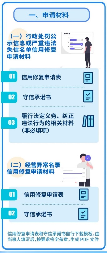 被列入經營異常名錄的經營主體可前往登記機關(如登記機關為政務服務局,則為同級的市場監管局)申請信用修復。所需材料與線上申請一致。