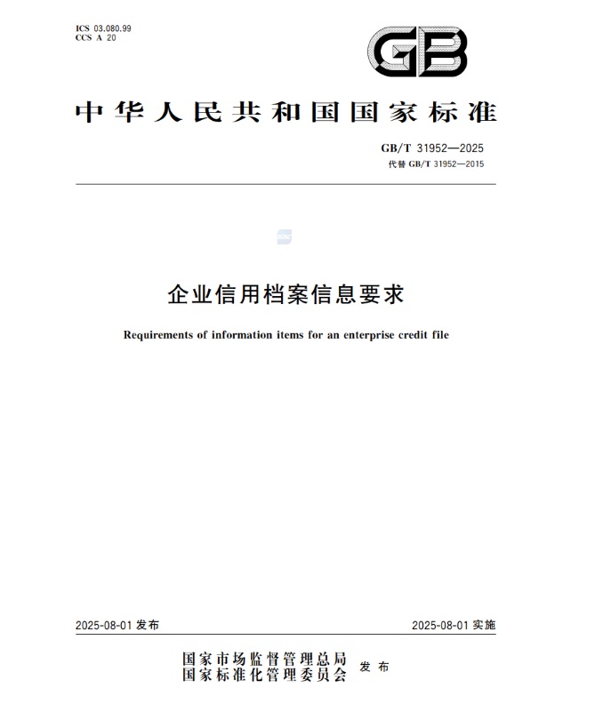 近日,市場監管總局修訂發布《企業信用數據項要求》(GB/T 22120—2025)、《企業信用檔案信息要求》(GB/T 31952—2025)、《企業信用信息采集、處理和提供指南》(GB/T 22118—2025)三項國家標準,為企業信用信息歸集、信息處理、信息共享及信用檔案建設提供系統指引。