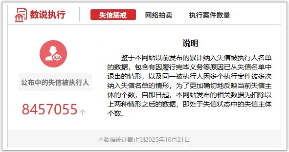 近日,最高人民法院發布數據顯示,今年前三季度,新納入失信名單167.2萬人次,同比下降2.45%,連續六個季度下降。人民法院積極推動失信被執行人信用修復,197萬人次通過信用修復回歸市場。 在最高人民法院工作報告中的數據顯示,2024年,納入失信名單245.7萬人次,同比下降23.4%;282.1萬人次通過信用修復回歸市場,同比增長35.4%,首次超過納入失信名單人數。 為推進社會信用體系建設,我國最高人民法院于2013年7月發布《關于公布失信被執行人名單信息的若干規定》,同年10月開通失信被執行人查詢平臺,對失信被執行人采取公示懲戒措施,至今已有12年。 近年來,通過對失信行為綜合治理,社會公眾法治意識、誠信意識不斷提升,執法司法環境不斷改善,有力推動了社會信用體系建設。截至目前,我國公布中的失信被執行人數量為8457055個,總人數連續兩年呈下降趨勢。