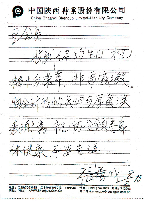 一句問候值千金,濃濃情誼暖人心!在協會的領導下,企業服務部為會員在過生日時送去祝福這一項細致的服務深受企業歡迎,并贏得了企業的贊譽。3月9日,我會收到由陜西神果股份有限公司董事長張普成親自傳來的生日祝福感謝信。信上,張董事長對協會送去的祝福表示十分榮幸和感激,并就協會對其的關心與厚愛表示深深謝意,同時也為協會領導帶來了衷心的祝福。我會表示,像這樣看起來不足一提的工作,我們一直用心去做,不僅在會員過生日時及時送去我們的祝福,在企業有重大喜事、困難時,我們也會及時地發去賀信和慰問信,深入企業了解情況,幫助企業更好的發展,真正地做到協會就是會員的娘家人。