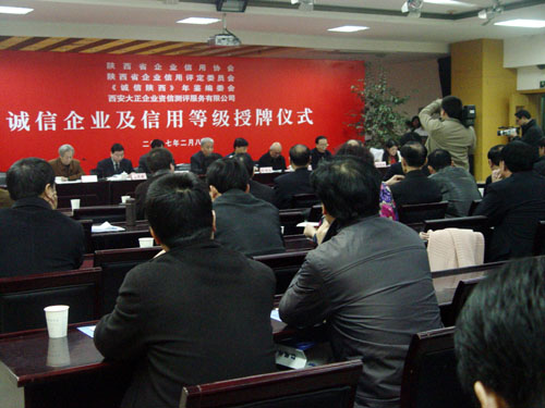劉遵義出席 朱振義講話 2007年2月8日,陜西省首批綜合信用等級企業(yè)授牌儀式在西安舉行。省人大副主任劉遵義、省政協(xié)副主席朱振義、省人大財(cái)經(jīng)委副主任邱世杰、省人民政府機(jī)關(guān)事務(wù)管理局原局長靳山旺、省企業(yè)信用協(xié)會會長趙建福、省工商局前局長宿景周、省企業(yè)信用協(xié)會常務(wù)副會長、秘書長王平安出席了會議。 會上,陜西省政協(xié)副主席朱振義講話,他說完善的 社會信用體系是建設(shè)和諧社會的基礎(chǔ)。信用,是信守承諾的責(zé)任感,是對自身行為后果負(fù)責(zé)的道德感。是一個(gè)人、一個(gè)企業(yè)乃至一個(gè)國家的品性,也是社會進(jìn)步的標(biāo)志。企業(yè)搞好信用建設(shè),不僅有利于企業(yè)自身的發(fā)展,而且有利于整個(gè)國民經(jīng)濟(jì)的有序運(yùn)行。積累企業(yè)信用財(cái)富,提高企業(yè)信用意識,改善我國企業(yè)的信用狀況,提高利用信用產(chǎn)品的能力,和信用管理水平已經(jīng)變得十分迫切。重建信用已成為企業(yè)的當(dāng)務(wù)之急,誠信問題將直接影響企業(yè)的競爭力。 包括陜西龍門鋼鐵(|集團(tuán))有限公司、陜西銀河信通有限責(zé)任公司在內(nèi)的8家企業(yè)領(lǐng)取了綜合信用等級證書。陜西龍門鋼鐵(|集團(tuán))有限公司、西安澳通電訊有限責(zé)任公司、陜西中城投資有限公司的企業(yè)代表發(fā)言。 企業(yè)綜合信用等級評定是指在企業(yè)經(jīng)營狀況的基礎(chǔ)上,通過科學(xué)計(jì)算和分析,對企業(yè)的基本狀況、經(jīng)營管理能力、經(jīng)濟(jì)效益、發(fā)展前景等各方面狀況進(jìn)行評定和預(yù)測,從而確定企業(yè)的信用級別的過程。 企業(yè)信用等級按A、B、C三等九級劃分,對前二等四級予以評定命名。包括AAA級、AA級、A級和BBB級,BB級及以下等級不予評定命名。 隨著市場經(jīng)濟(jì)制度的不斷發(fā)展和完善,企業(yè)的綜合信用等級在市場中的作用越來越大。就我省目前來說,通過綜合信用等級評定的企業(yè)在取得政府各職能部門的支持、參與招投標(biāo)、進(jìn)行上市和融資貸款等方面都獲得明顯的優(yōu)勢,為企業(yè)帶來了實(shí)實(shí)在在的好處。因此,企業(yè)綜合信用等級評定受到越來越多企業(yè)的重視。 我省的企業(yè)綜合信用等級評定工作遵循“政府引導(dǎo),行業(yè)自律,中介評價(jià),社會監(jiān)督”和“獨(dú)立、客觀、公正、科學(xué)”的原則,企業(yè)自愿參加,由陜西省企業(yè)信用協(xié)會組織、管理、宣傳、協(xié)調(diào),授權(quán)具有信用資質(zhì)的中介機(jī)構(gòu)進(jìn)行評估并出具信用報(bào)告,成立專門的信用等級評定委員會負(fù)責(zé)審定,實(shí)事求是地反映被評企業(yè)的綜合信用等級狀況。 同時(shí),還對一年來在我省誠信建設(shè)方面做出突出貢獻(xiàn)的寶雞石油鋼管有限責(zé)任公司等56戶企業(yè)進(jìn)行了表彰。