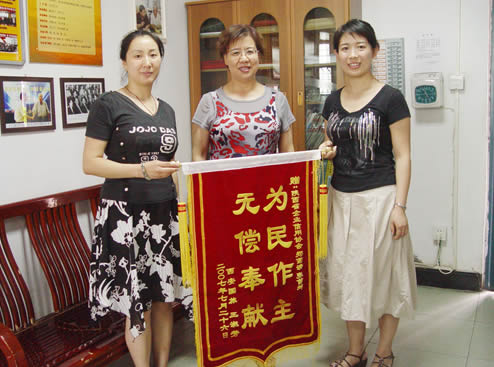 2007年7月26日,西安國旅王淑芳女士為陜西省企業信用協會贈送旌旗“為民做主 無償奉獻”表示感謝。